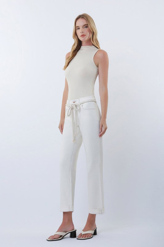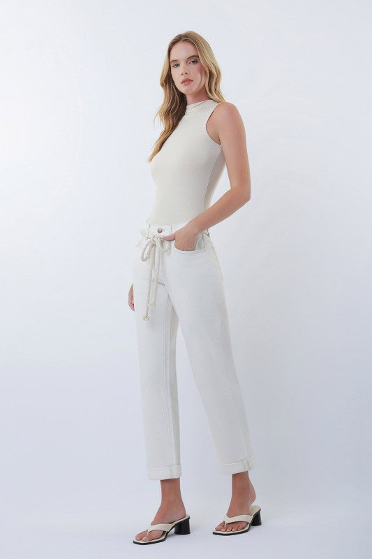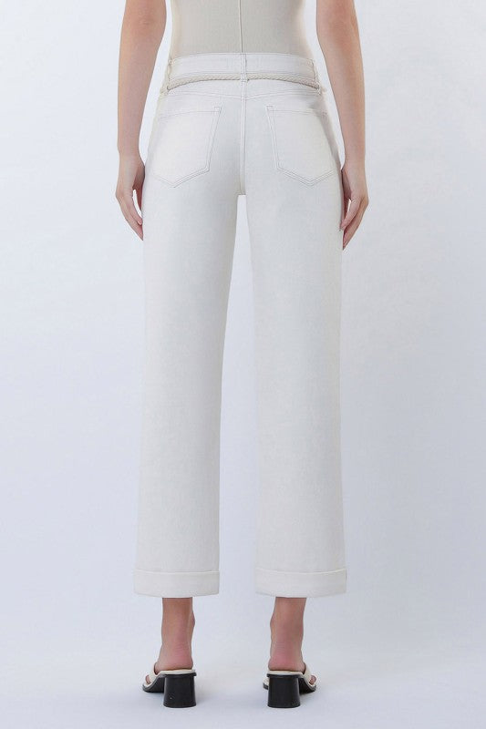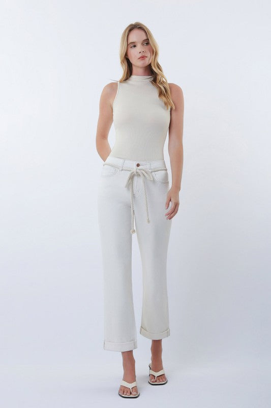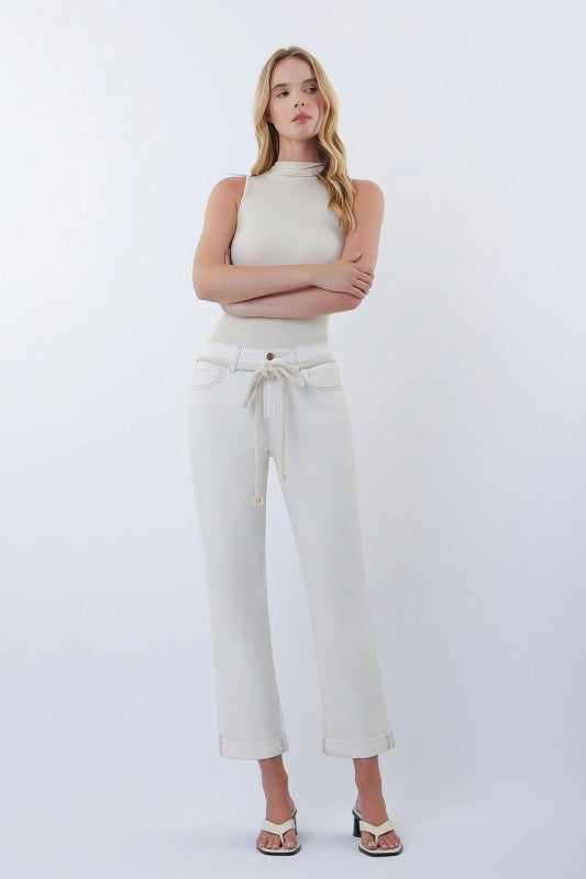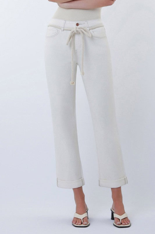 Classic five-pocket styling and a zipper front keep things timeless, while the removable braided rope tie waist adds a touch of coastal charm—wear it for a cinched, styled moment or remove it for a more classic feel.