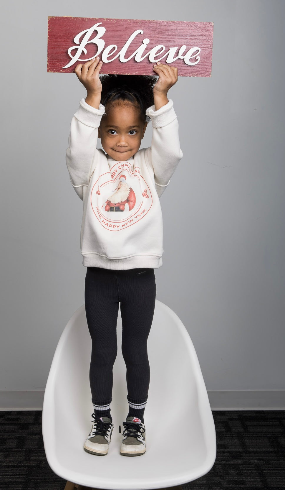 The cutest way to match this holiday season! The Kids’ Santa Crew features the same cozy, relaxed fit as our Be Yourself Kids Sweater — soft, warm, and made for all-day comfort. Available in cream or light pink, each one showcases the sweetest nostalgic Santa print that matches perfectly with the Ladies’ Santa Crew.