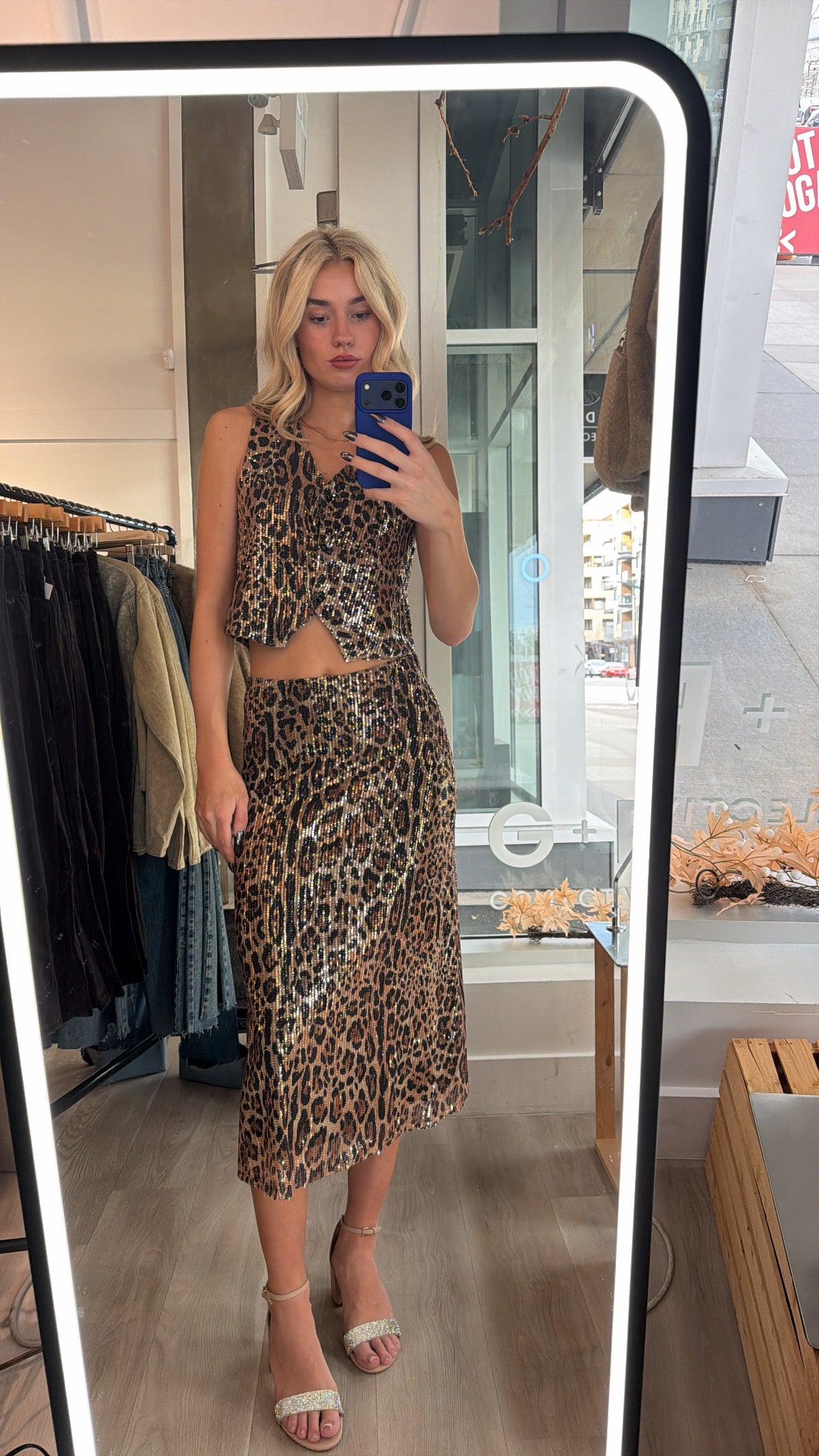 From denim to leather bottoms, trousers to skirts, the styling opportunities are endless. Pair it with its matching Sequins & Leopard Midi Skirt for a stunning, dress-like set that turns heads.