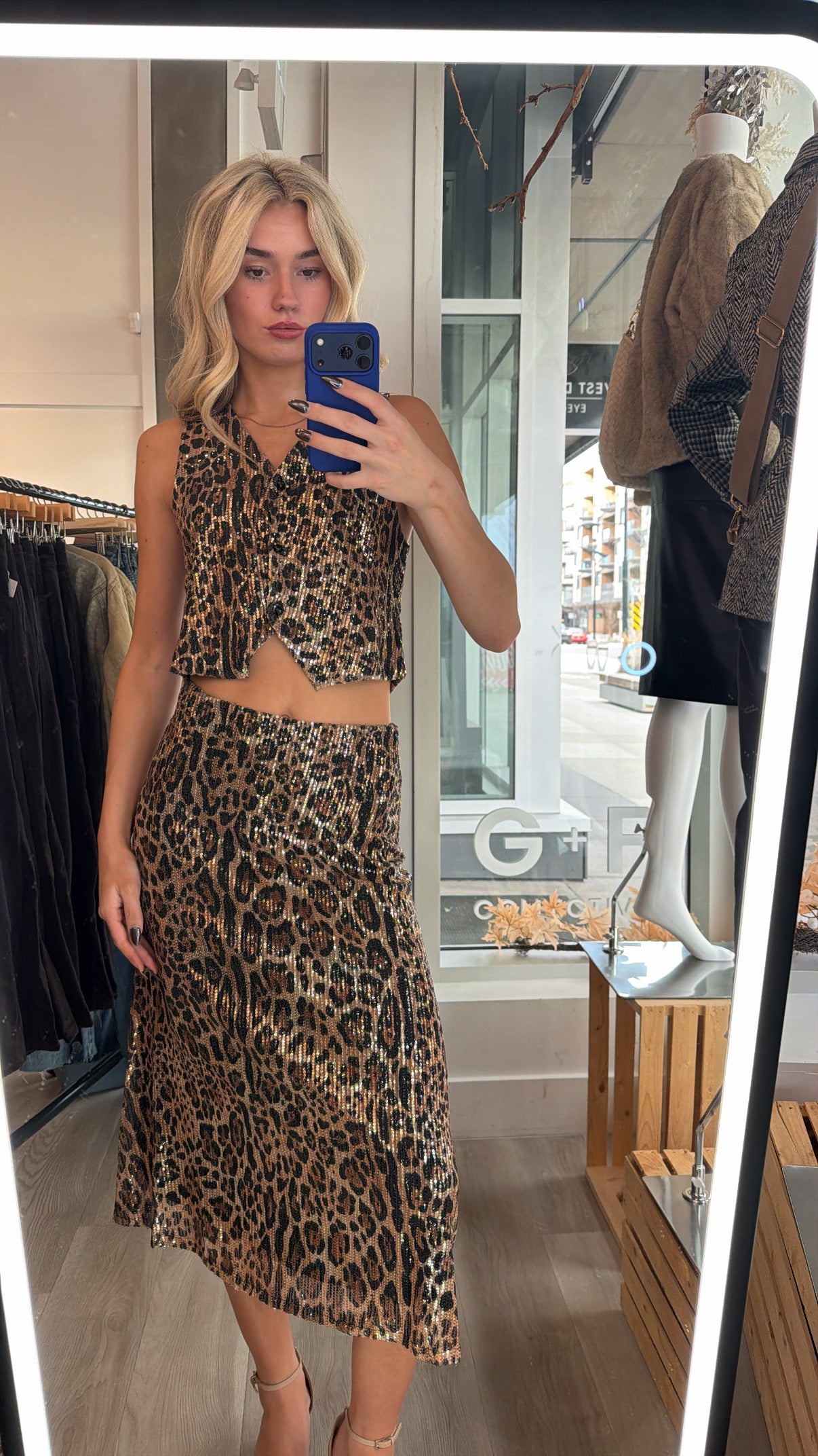 Sequins + Leopard Vest Top