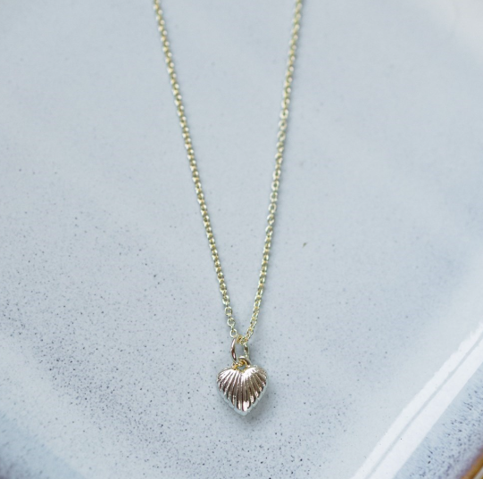 The coastal kiss, dainty + gorgeous. Inspired by the seashell design but in the shape of a heart. Feminine just on its own. Matching earrings avail as well (search Coastal Love Hoops). Both necklace and earrings are available in gold or silver.