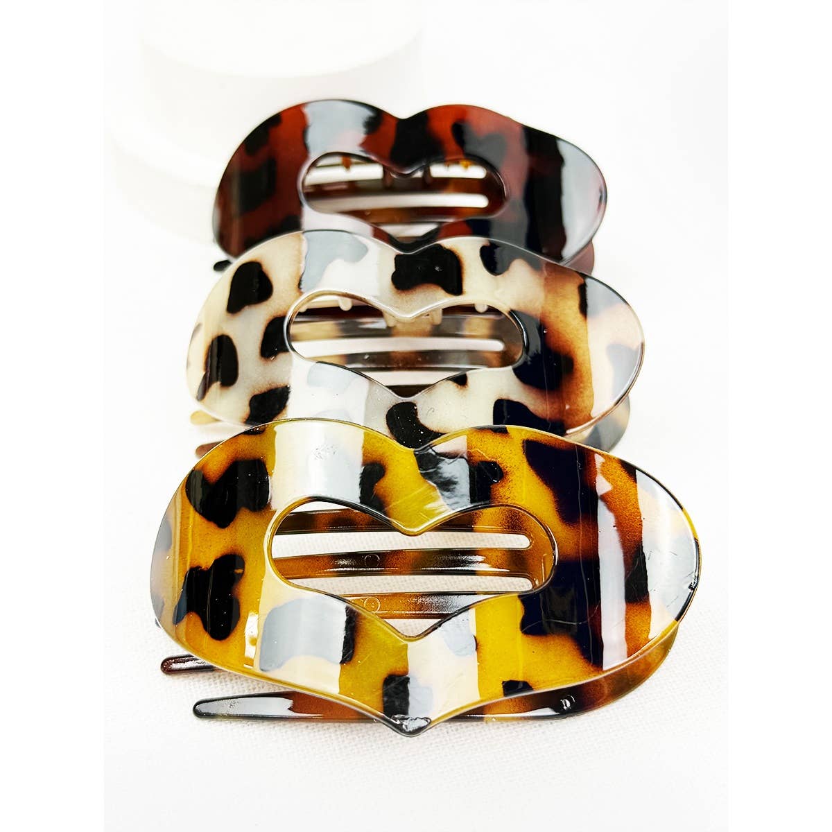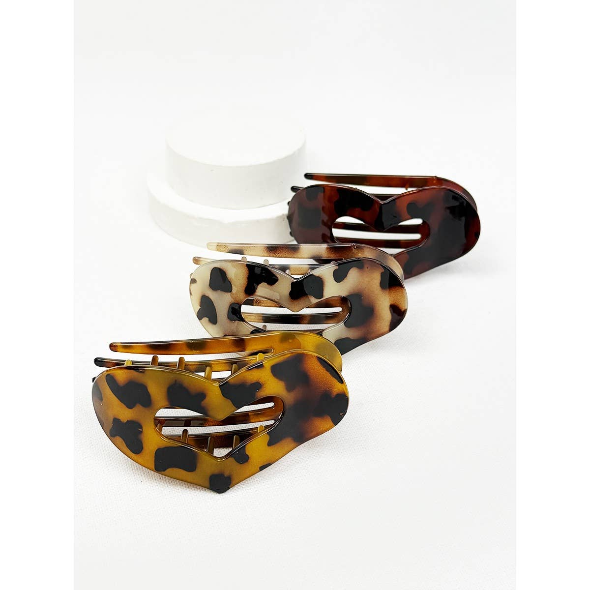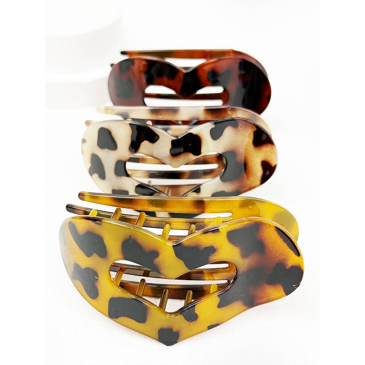 Leopard Heart Shape Cut out Flat Hair Clip -Strong Hold No Slip Large Claw Clips. Avail in 3 leopard shades - light, med + dark.