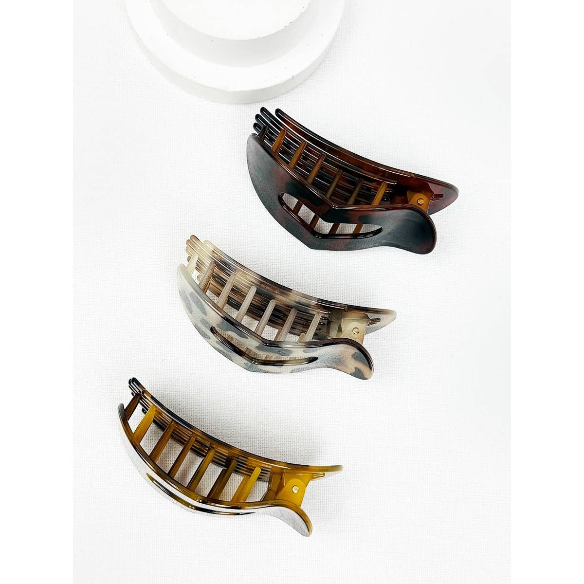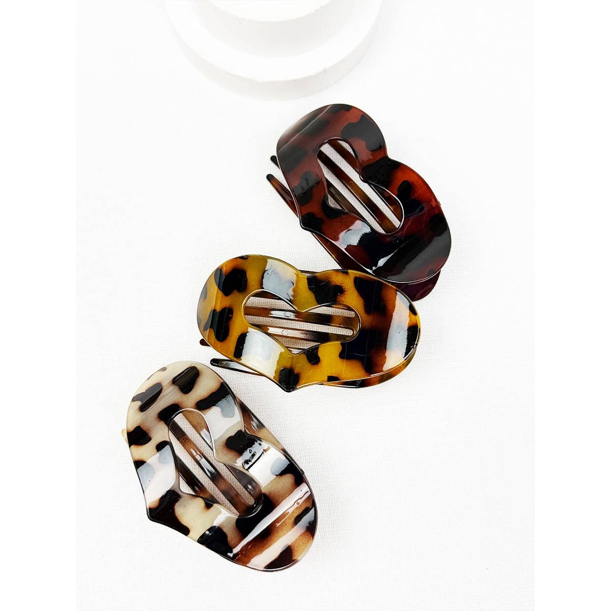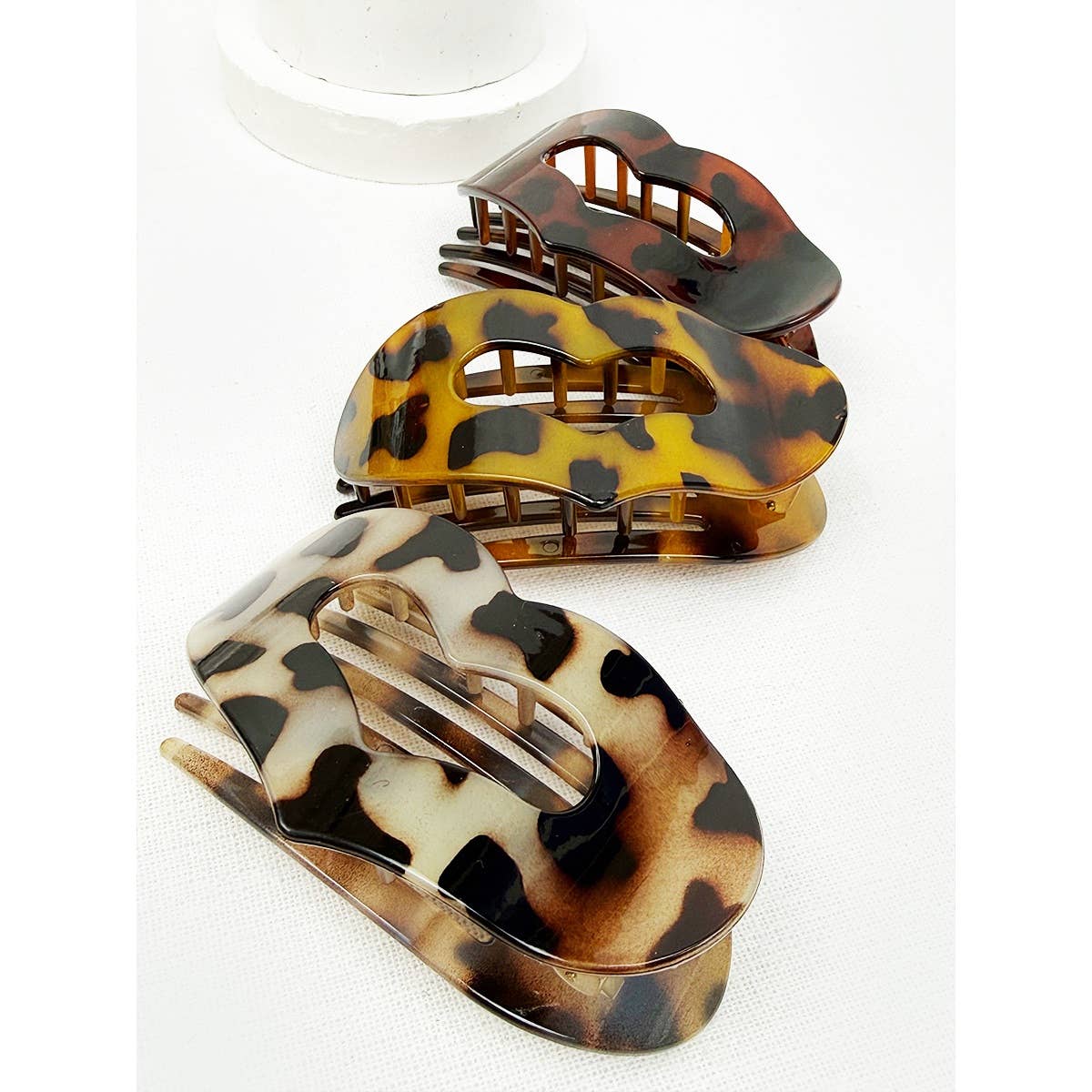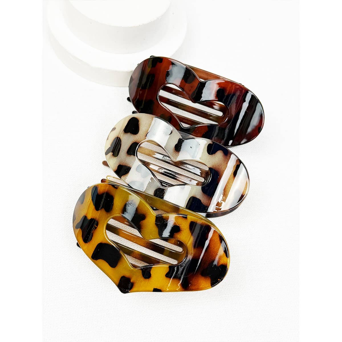 Leopard Heart Shape Cut out Flat Hair Clip -Strong Hold No Slip Large Claw Clips. Avail in 3 leopard shades - light, med + dark.