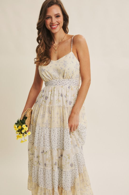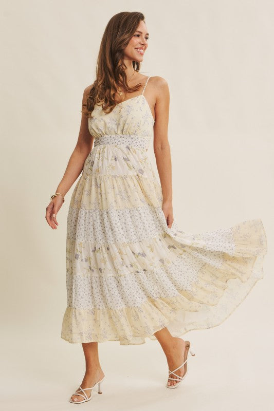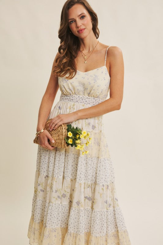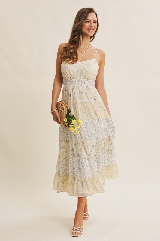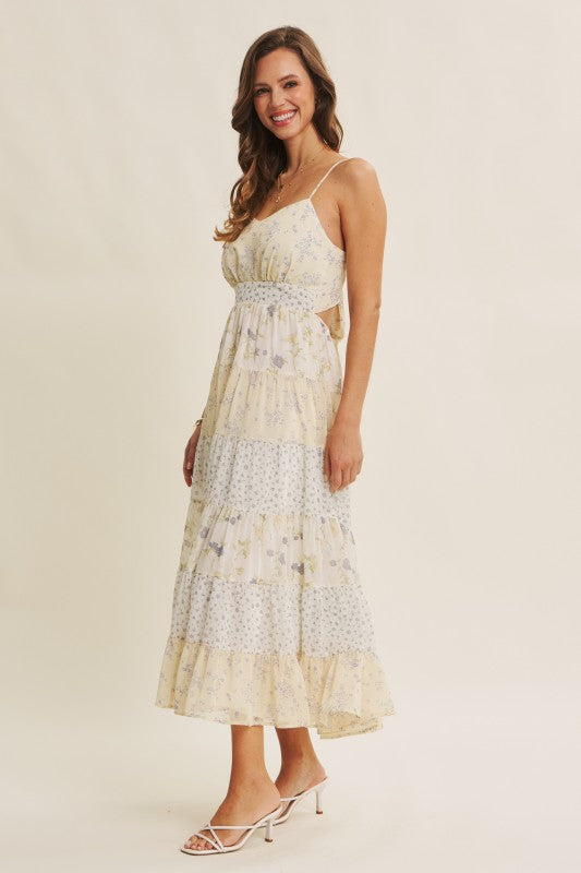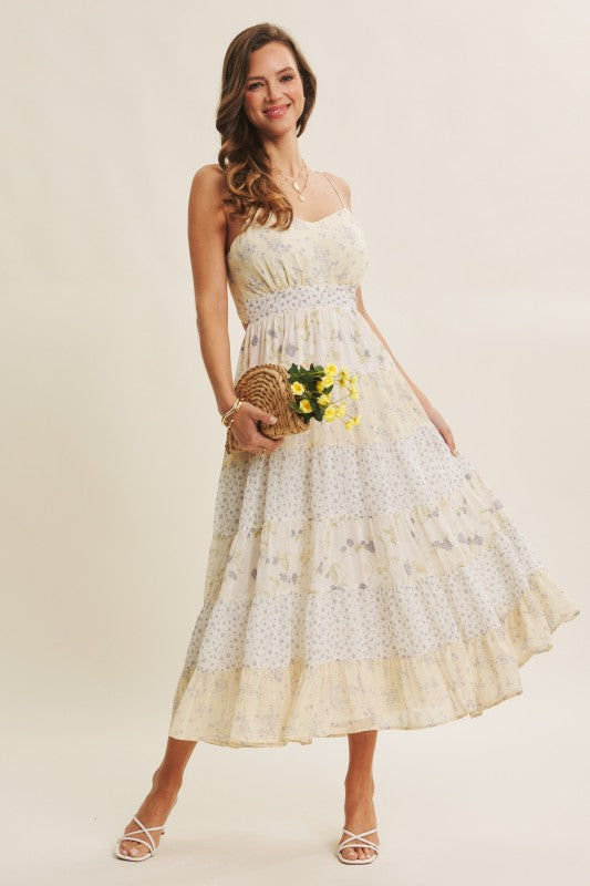 The Meadows Midi Dress is the definition of soft, romantic charm. Designed in a beautifully mixed floral print, this tiered midi dress features an elegant V-neckline, adjustable straps, and a stunning open back finished with a self-tie bow detail. An elasticated back waist adds comfort while maintaining a flattering, easy-to-wear silhouette.