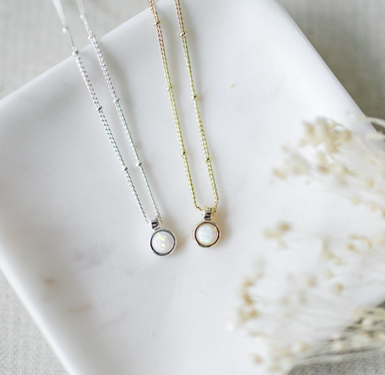 The Ona Necklace, gorgeous opalite stone on a dainty, feminine chain. Simple + Elegant all on its own or layer it with a basic chain. Avail in gold + silver.