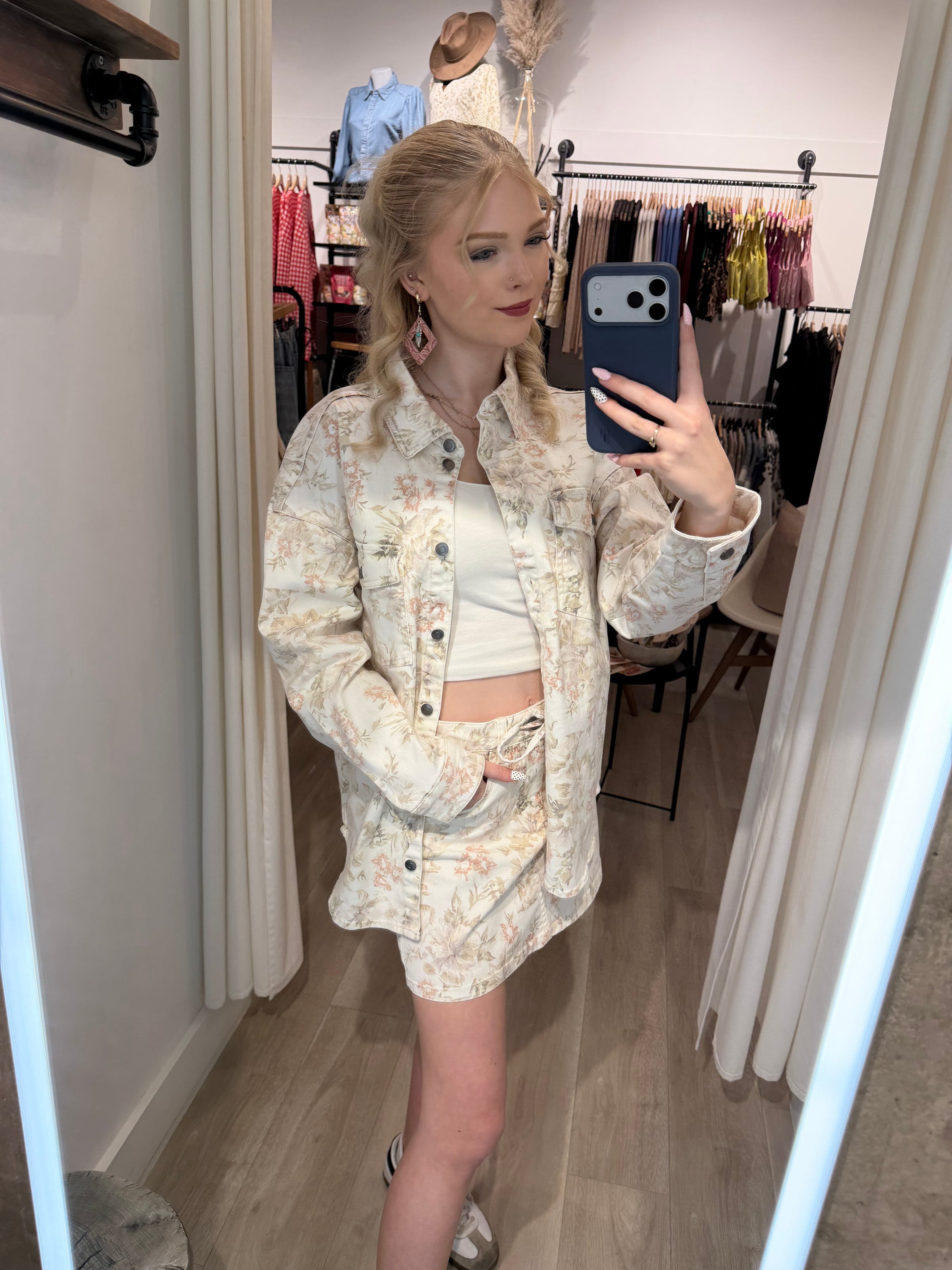 Meet the Floral Muse Shacket — the prettiest layer your wardrobe’s been waiting for From our beloved Canadian brand RD Style 🇨🇦 this dreamy piece is crafted from 100% cotton in a soft, breathable cream denim with the most delicate pastel floral print throughout. It’s lightweight with a touch of stretch, making it just as comfortable as it is effortlessly chic.