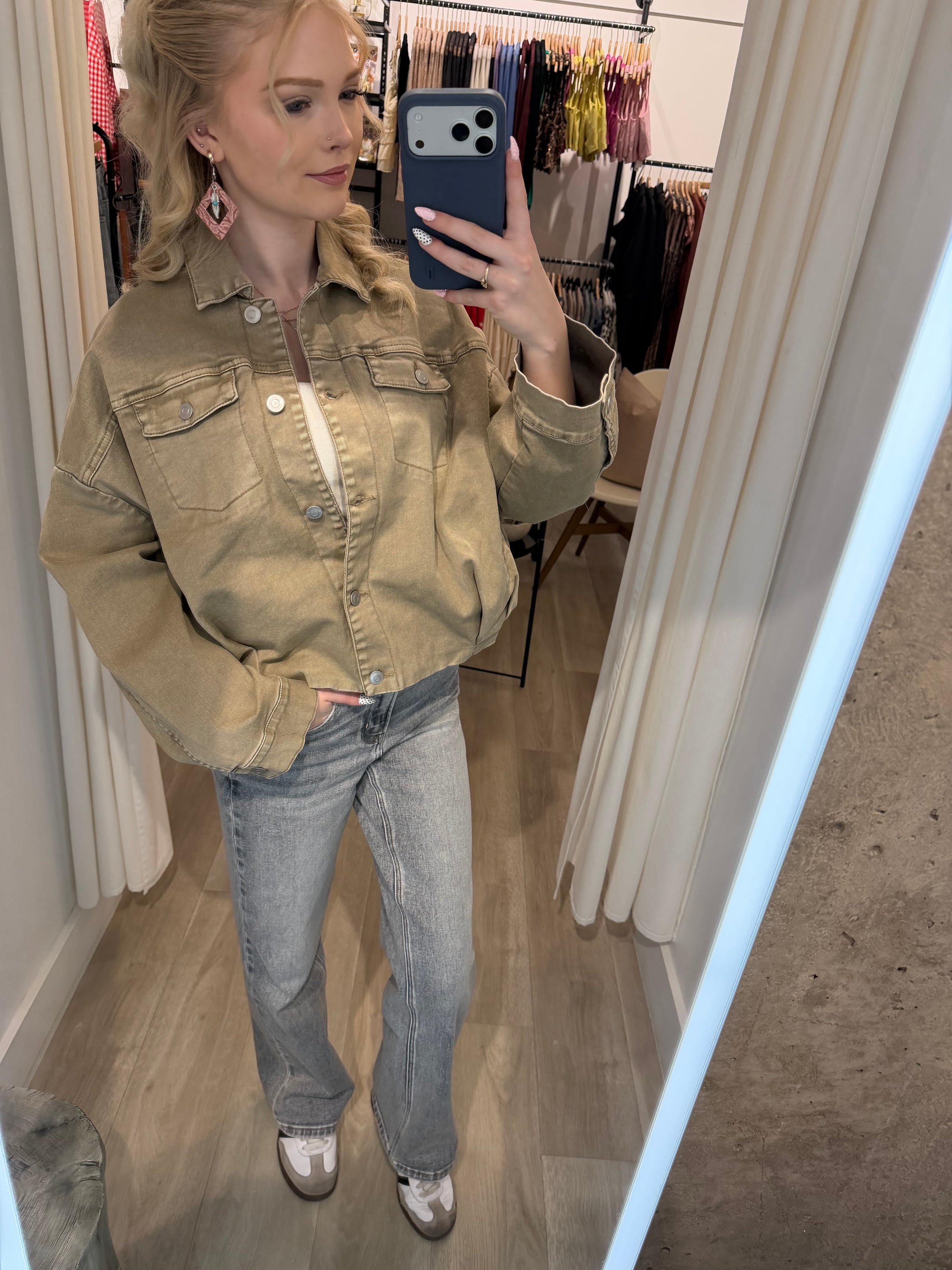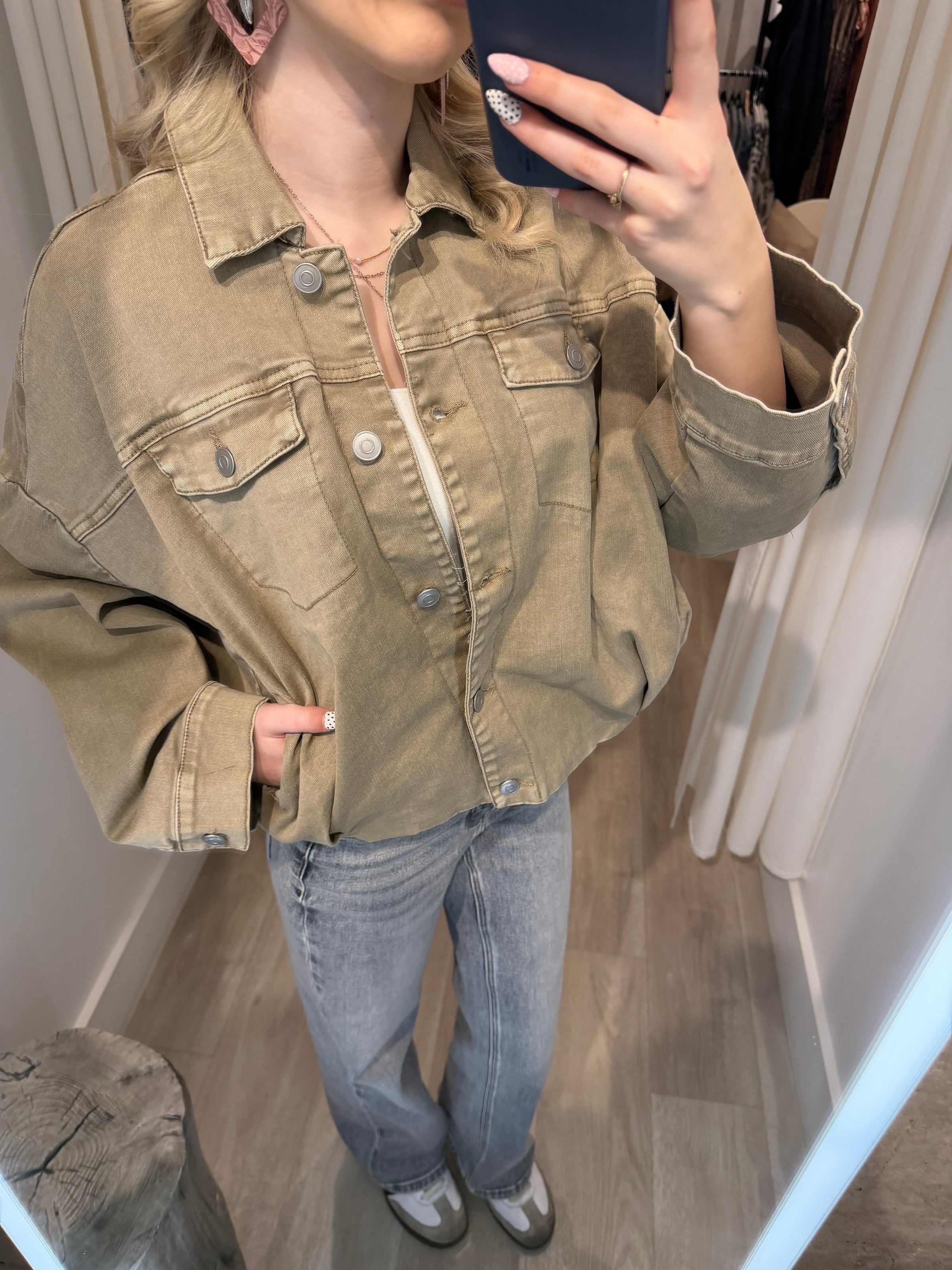 The versatile sandstone hue makes it a true wear-with-anything piece — pair it with black trousers for a more polished, office-ready look, or keep it casual with denim or leggings. It’s the kind of jacket that effortlessly adapts to your day-to-day styling.