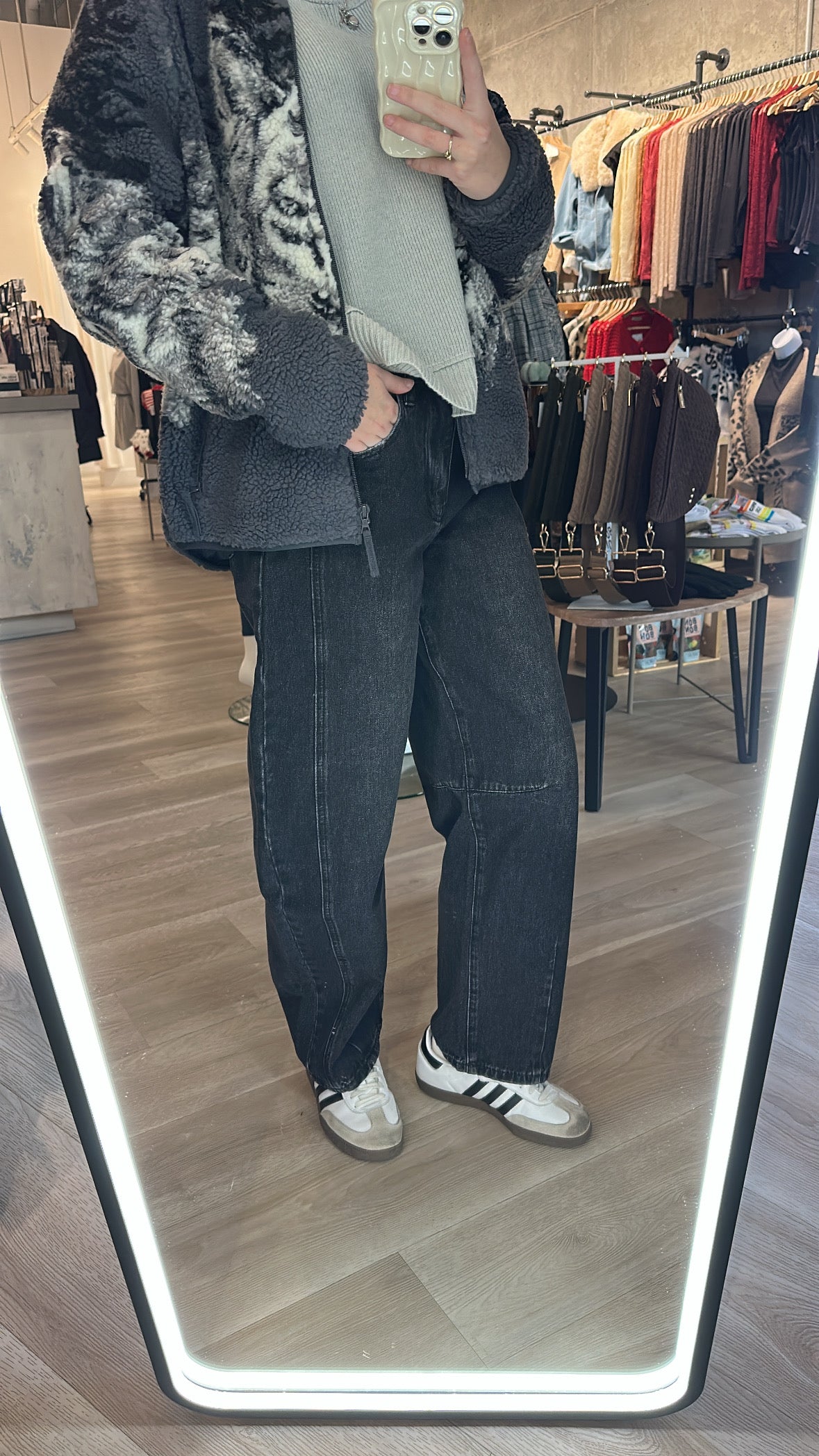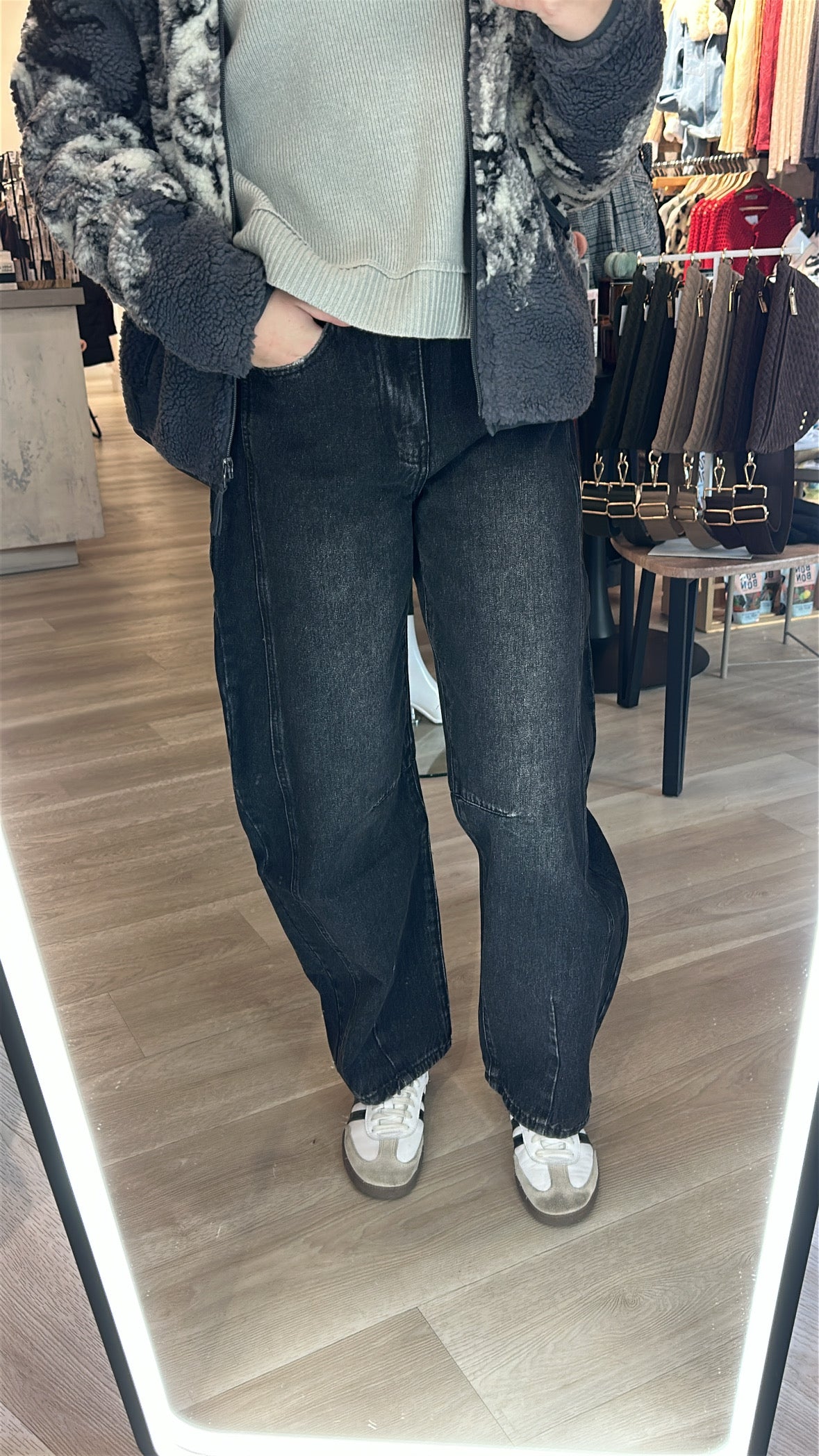 Introducing our newest Canadian brand, Kuwalla, proudly based in Montreal. The Jacqueline Barrel Leg Denim comes in a stunning vintage black wash with subtle mineral tones for that perfectly worn-in, lived-in look.