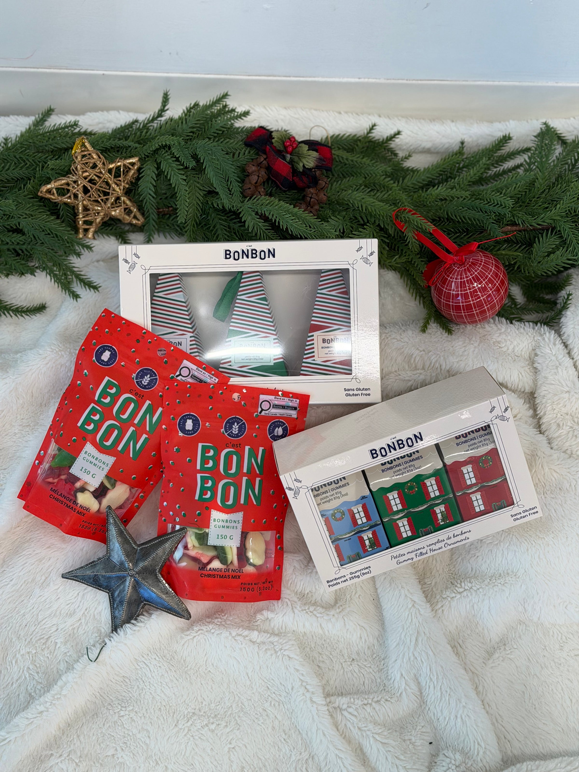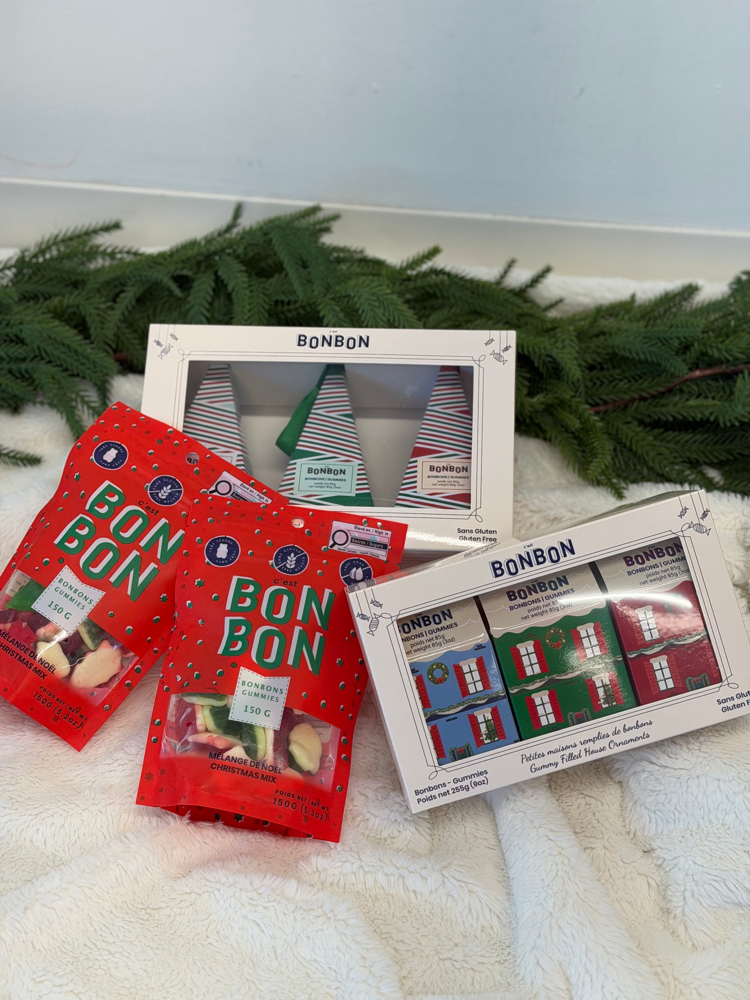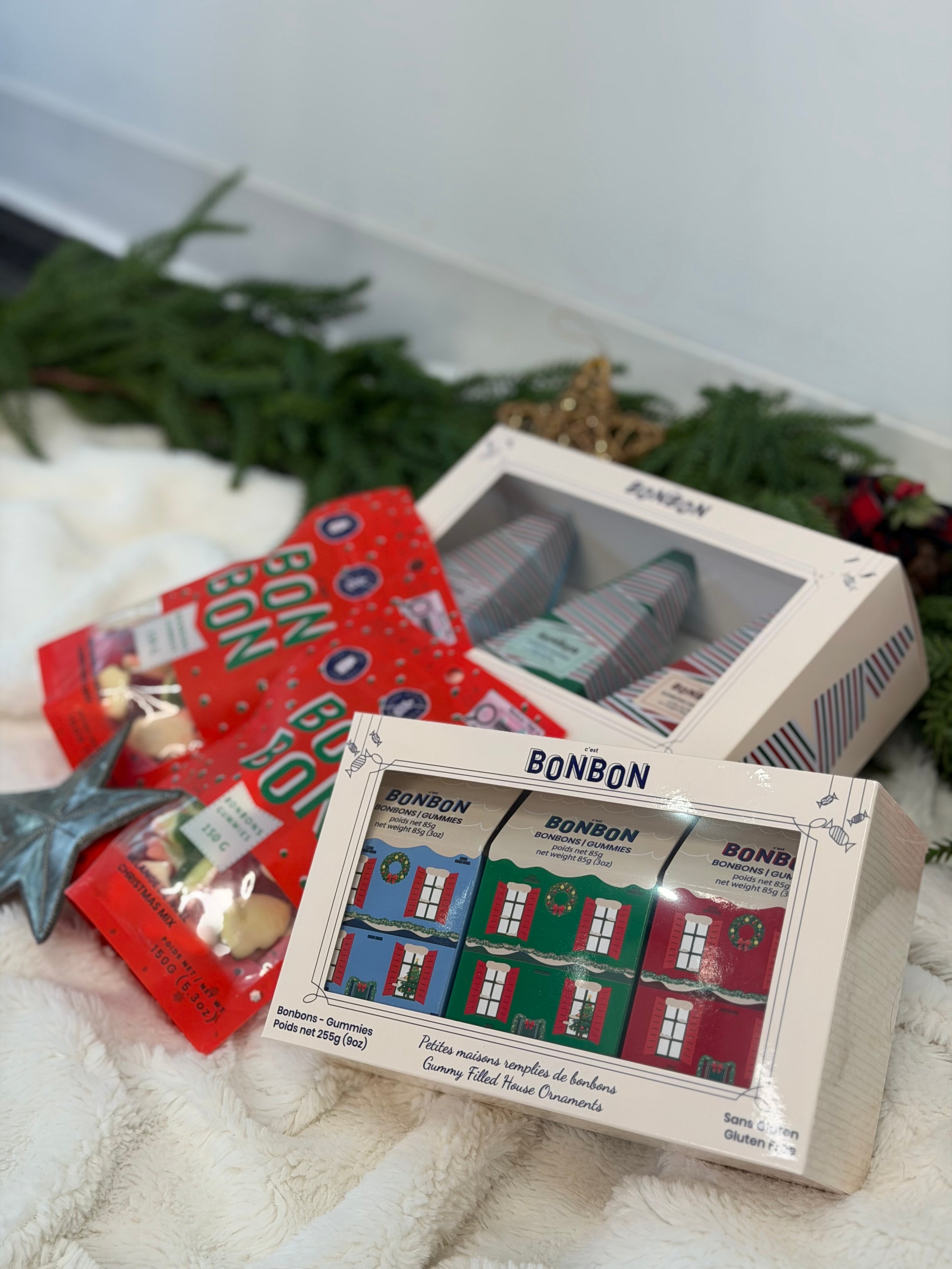 The trio of Christmas trees offers an assortment of 85g of candies per house. Perfect for decorating the tree, gifting as a hostess gift or just devouring yourself!