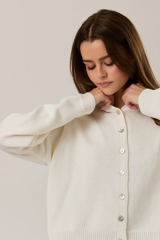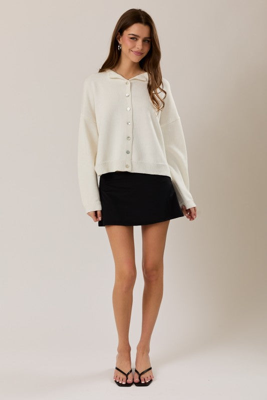 Designed with a functional button-down front, she can be worn two ways: layered open as the sweetest little cardigan or buttoned up and styled as a knit top. Leave the top few buttons undone and you get the cutest subtle lapel detail for an effortlessly polished look.