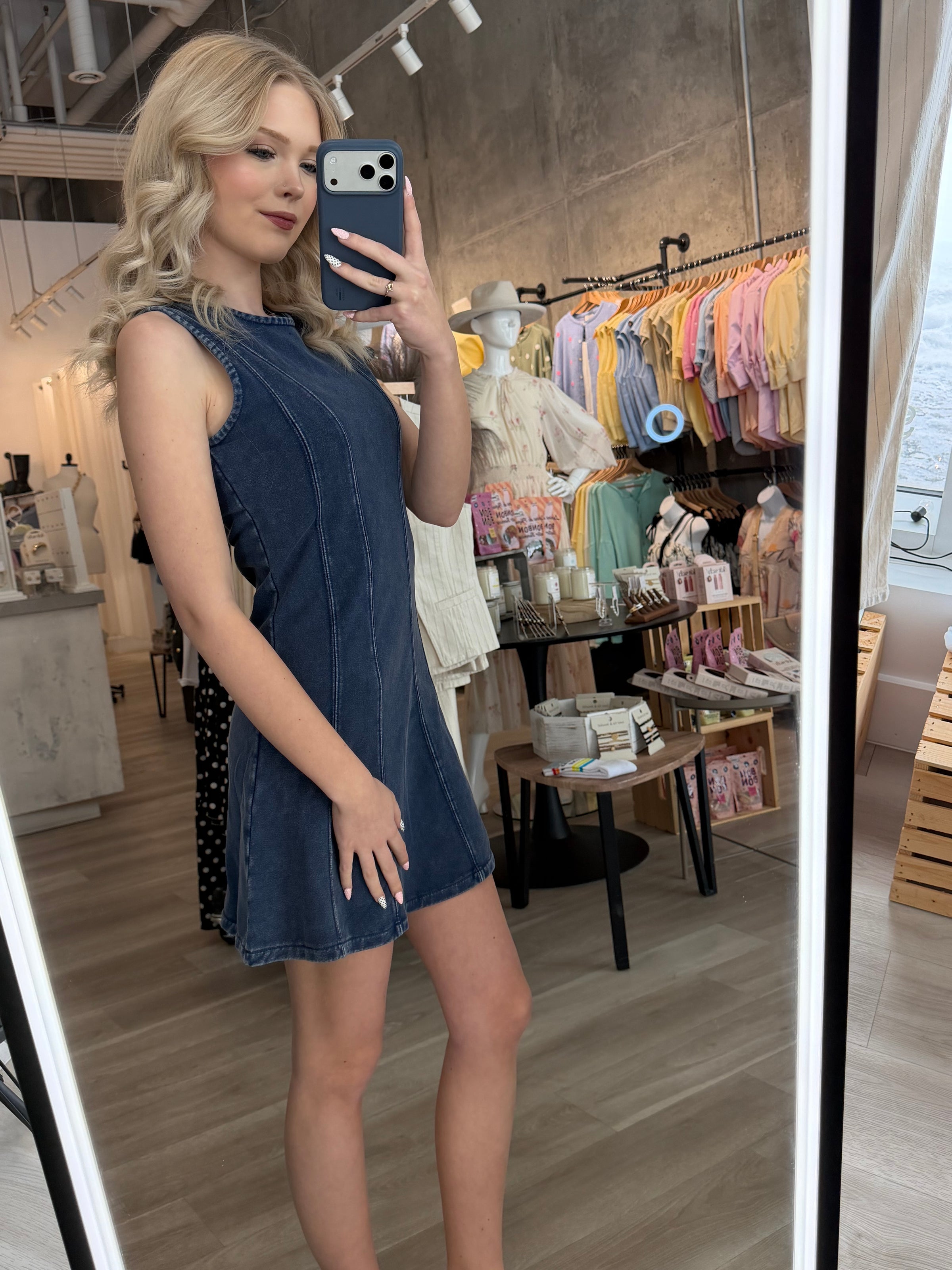 The Rachel Denim Dress by Rd Style 🇨🇦 is your new everyday favourite with a soft twist. Crafted from ultra comfortable French terry cotton, it gives you that classic denim look without any of the stiffness. Lightweight, stretchy, and incredibly soft, this is the kind of dress you will reach for again and again.