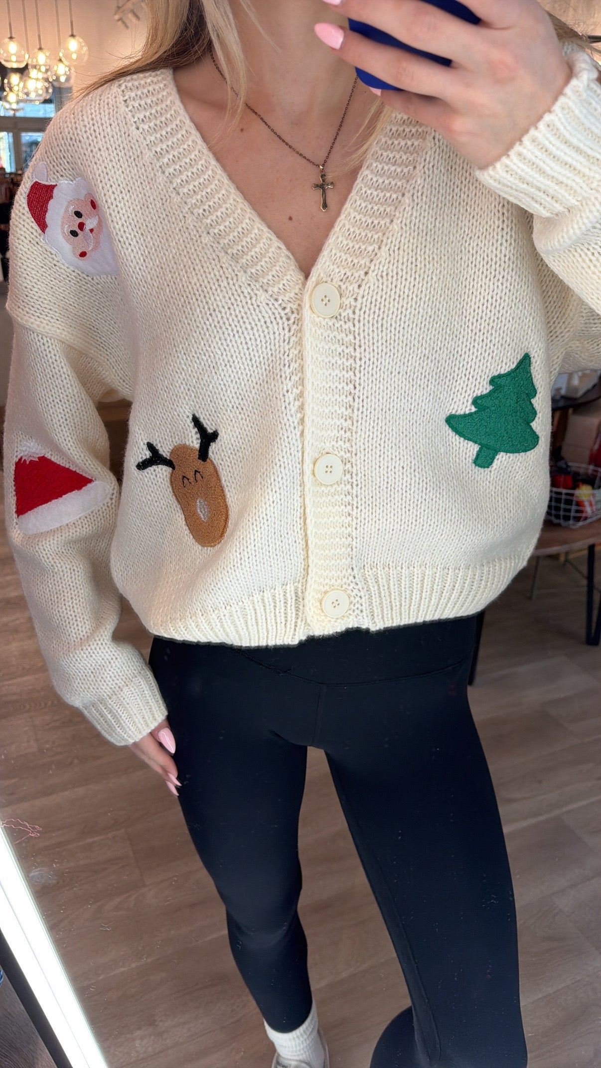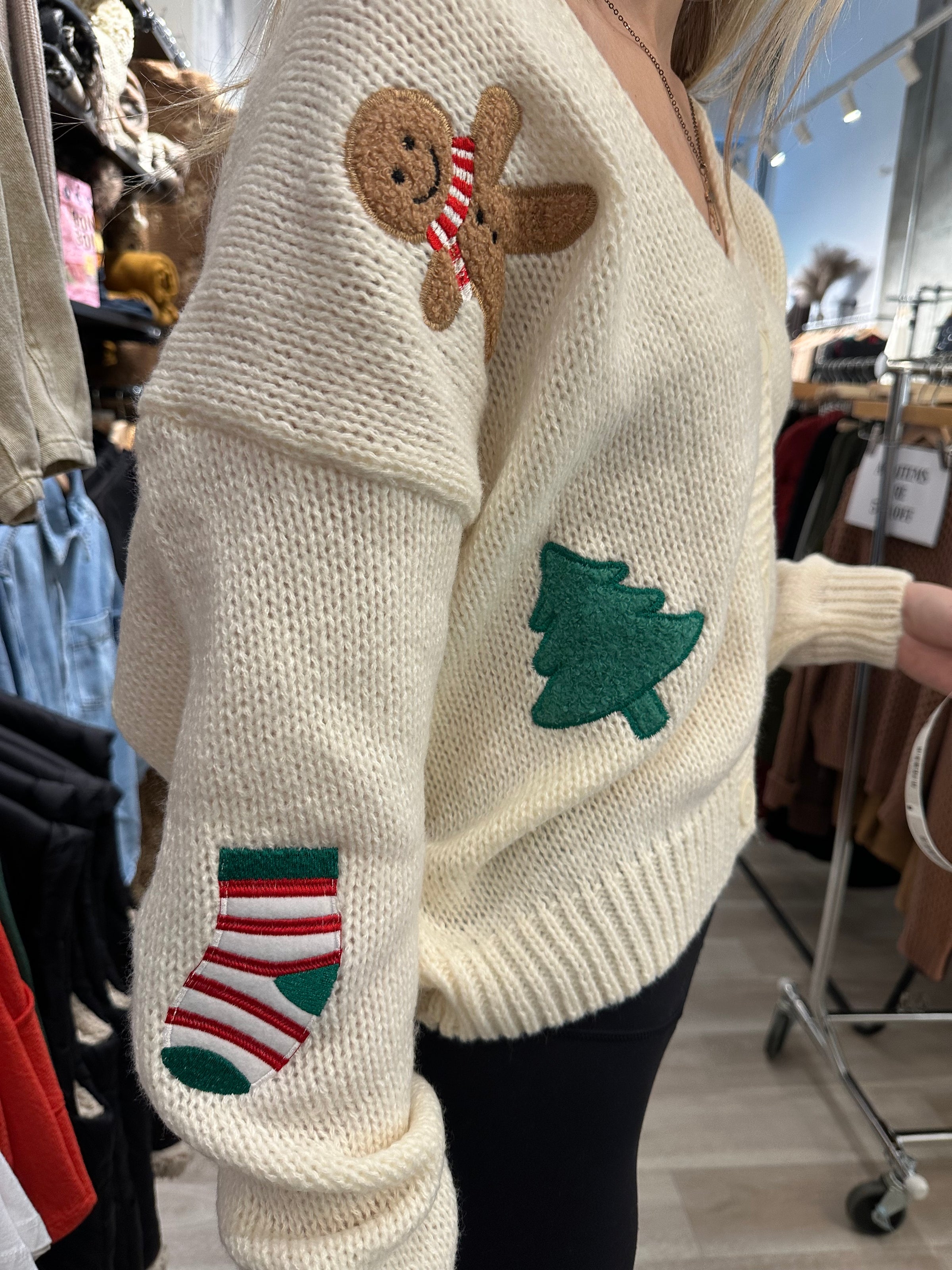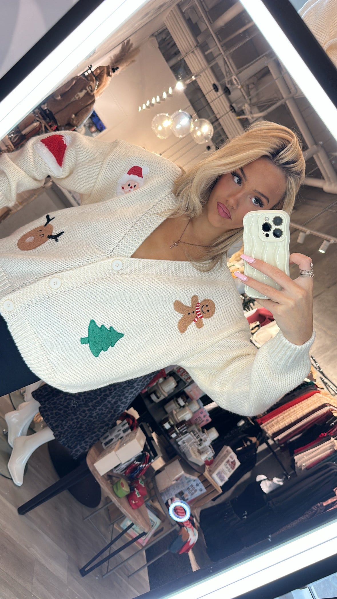 Adorned with the cutest Christmas inspired patches including xmas tree, gingerbread man, Santa, reindeer etc, this cardigan adds just the right touch of holiday cheer without feeling over the top.