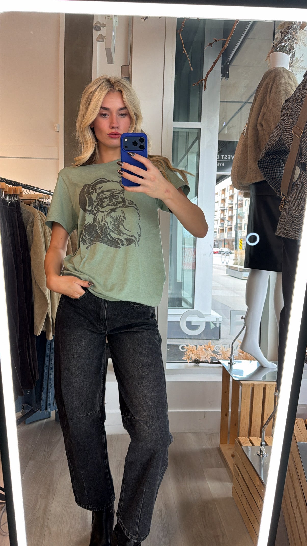 Printed on bella canvas graphic tees in cream and light sage. S - XL unisex slim cut. Butter soft and all the nostalgia feels.