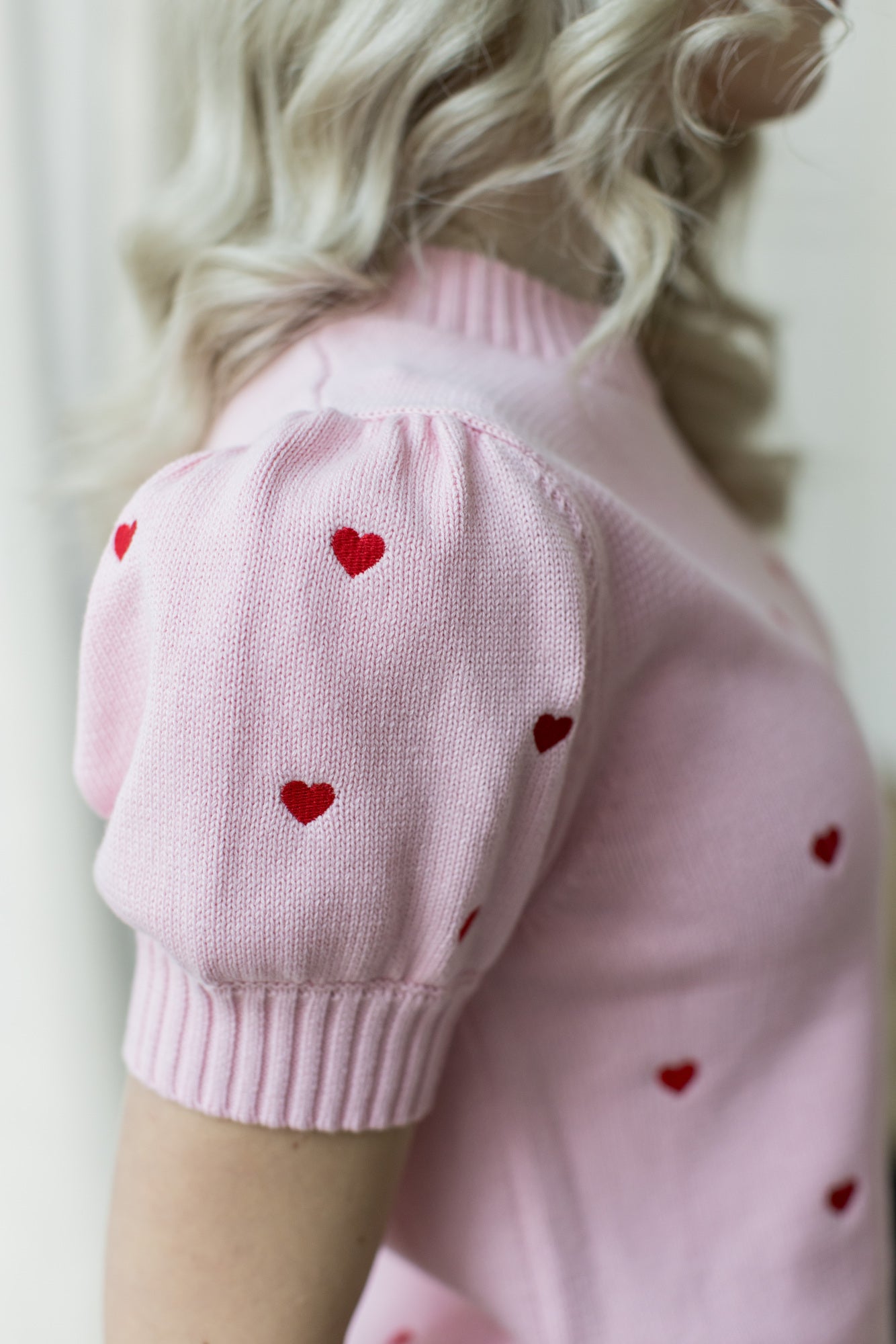 Front, back, and sleeves are sprinkled with the cutest red embroidered mini hearts, making this piece feel extra special. Dress it up for the office layered under a blazer with dress pants, or style it with a leather skirt, leather pants, or denim for a more playful look. The possibilities are truly endless.